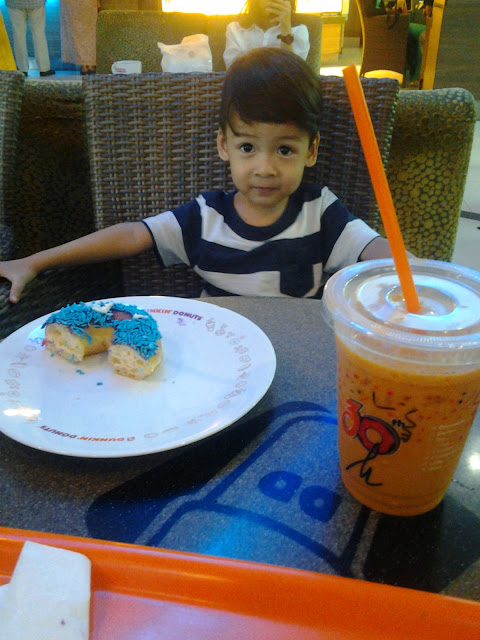 Sampai di Gambir, kami singgah sebentar untuk sarapan roti donat favorit. Mood booster buat si kecil yang dibangunkan subuh-subuh buat berangkat tadi, dan sudah manis sekali sepanjang perjalanan.